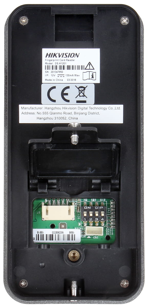 DS-K1201AEF Fingerprint and Card Reader A group of messy code encrypted data for the security of fingerprint storage Supports RS-485 communication with 19200bps-N-8-1 transmission rate. There are CRC test for the protocol Supports EM card reading Card induction distance is 30 mm to 100 mm Supports multiple authentication modes (card, fingerprint, and card + fingerprint) Optical CMOS fingerprint module. The characters of fingerprint can be export to the card reader Max. 5000 fingerprints storage Adopts the optical fingerprint module, supporting 1:N mode (fingerprint, card + fingerprint) and 1:1 mode (card + fingerprint) Fingerprint comparison time: 1:1 ≤ 1 s, 1:1000 ≤ 1 s; FRR ≤ 0.01%, FAR ≤ 0.001% Communication circuit is designed with optical coupling isolation and noise suppression function Built-in buzzer for status indication Accurate data and time display provided by built-in electronic clock and watchdog program to ensure the basic function of the terminal Tamper-proof function Specification Interface TAMPER 1 Authentication Fingerprint module Optical fing...